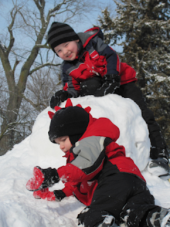 Troy rolled a HUGE snowball and after we all went into the house, he stayed outside and rebuilt the snowman into this 7-foot-anatomically-correct wonder....