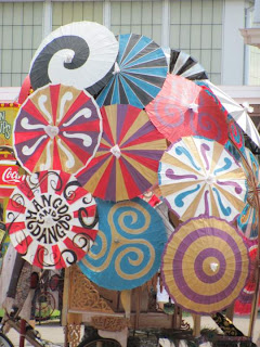 This was a bizarre traveling show with two people on stilts. I liked their paper umbrellas!
